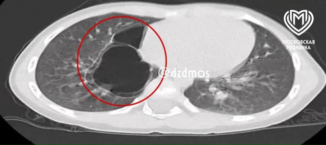 Рентген выявил уплотнения в правом легком, а компьютерная томография позволила установить точный диагноз – врожденную кистозно-аденоматозную мальформацию легких.