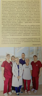 В новом номере газеты «Московская медицина cito» в рубрике «Пациенты благодарят врачей» прозвучали имена докторов инфекционного отделения №2 Детской больницы №9 им. Г.Н. Сперанского: