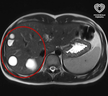 Пациентку госпитализировали в больницу после обследования, в ходе которого обнаружили случайную находку — крупные эхинококковые кисты в печени (их было пять штук).