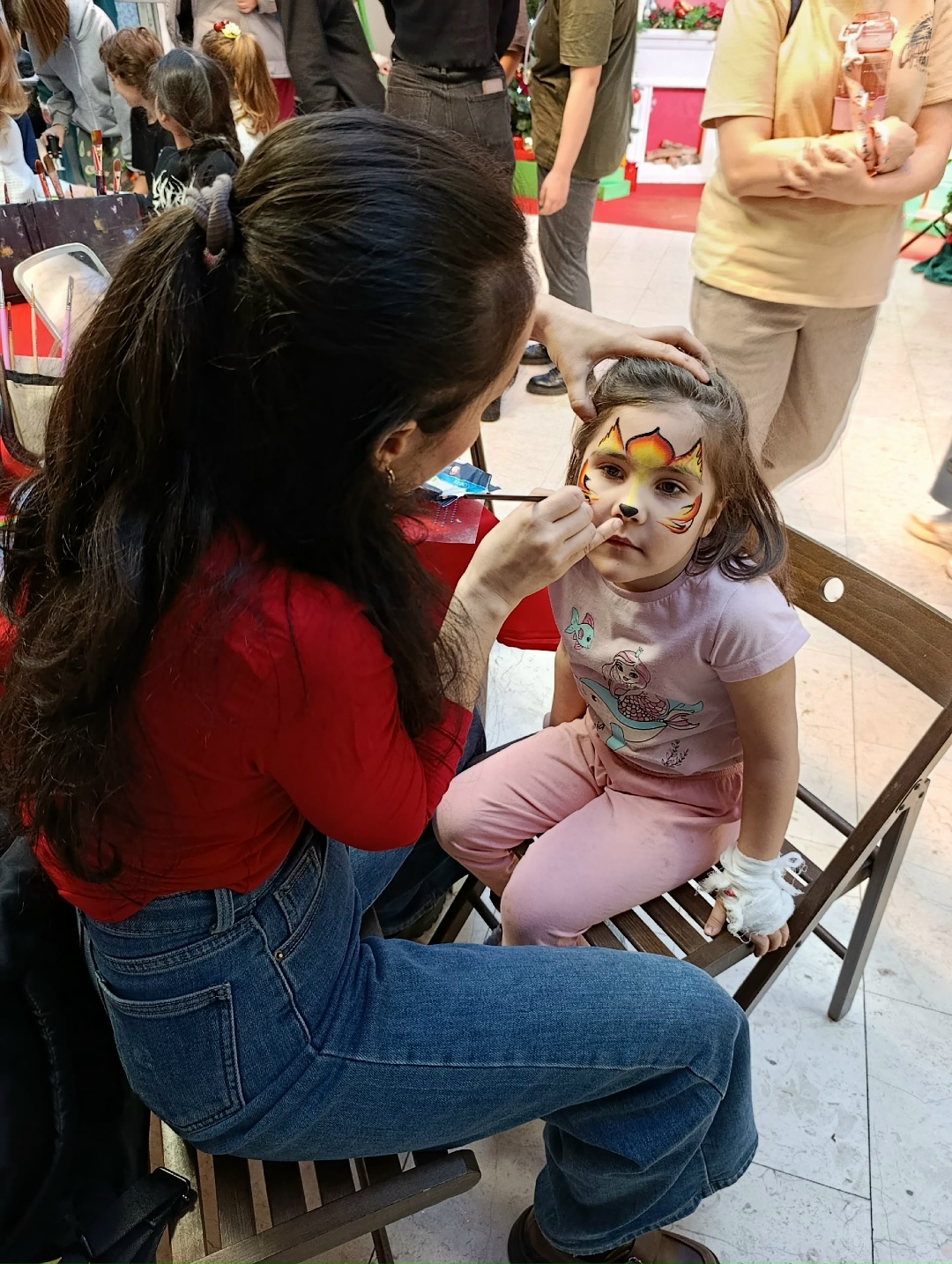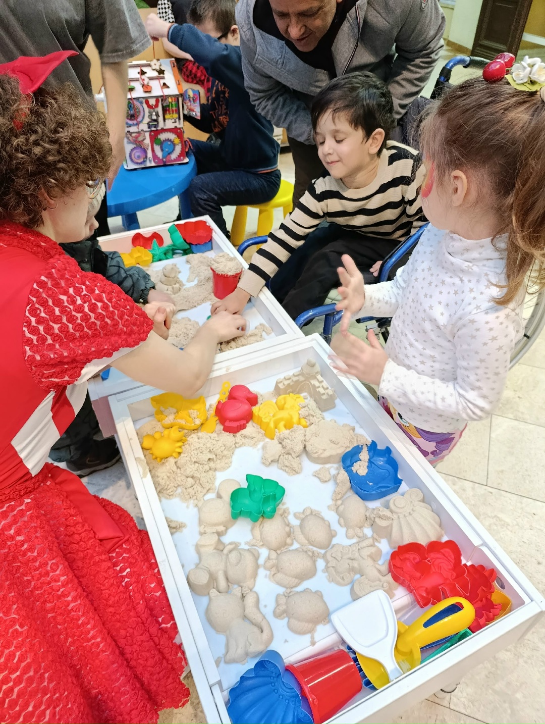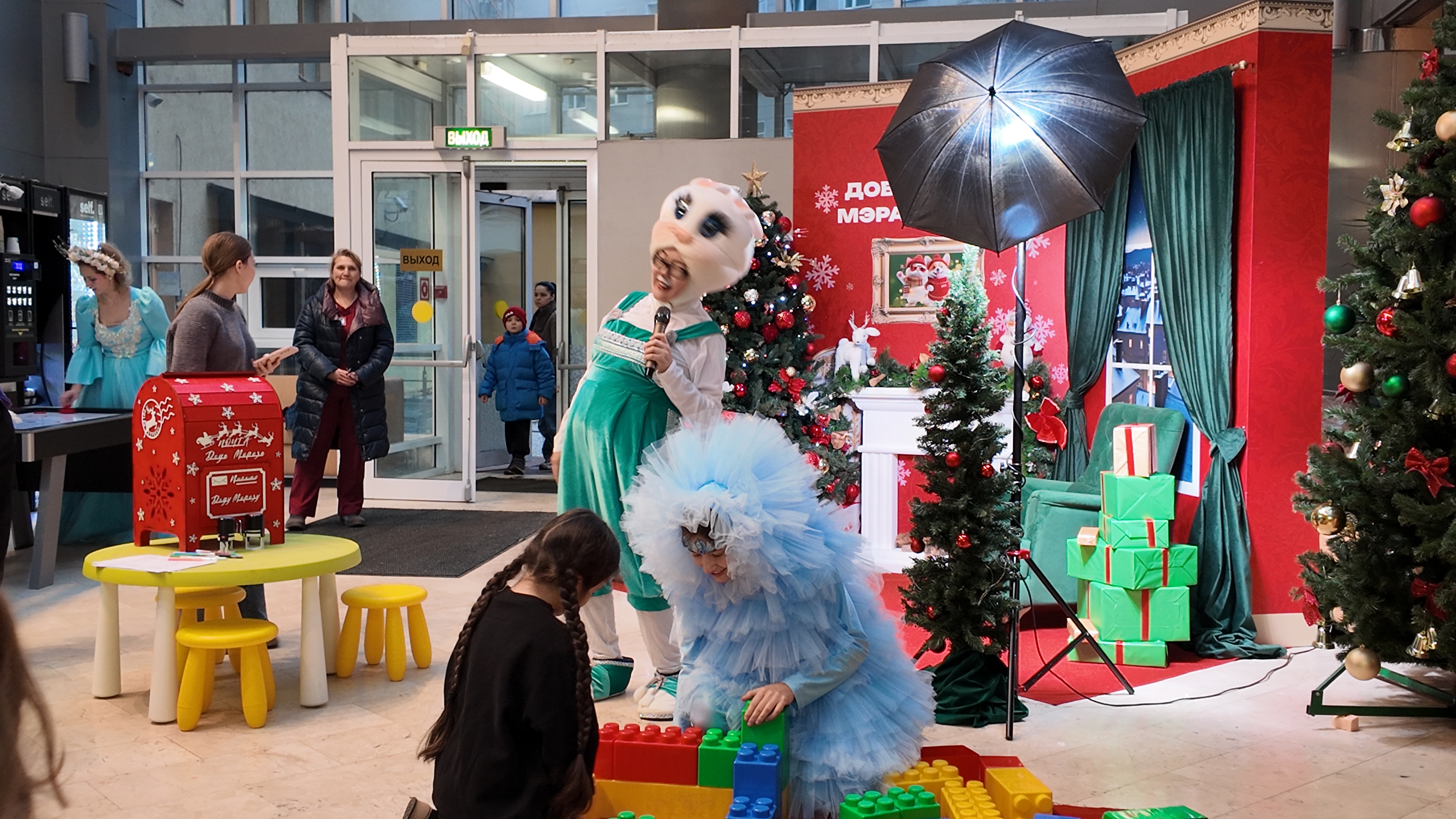 В Атриуме корпуса №1Б для ребят сделали уютное, праздничное пространство, где можно было получить много положительных эмоций и весело провести время, общаясь со сказочными персонажами: малыши, мальчишки и девчонки участвовали в конкурсах, лепили из кинетического песка, строили «замки» из конструктора, играли в настолку, писали добрые пожелания, рисовали, танцевали, бегали и прыгали, с помощью аквагрима перевоплощались в в любимых героев.