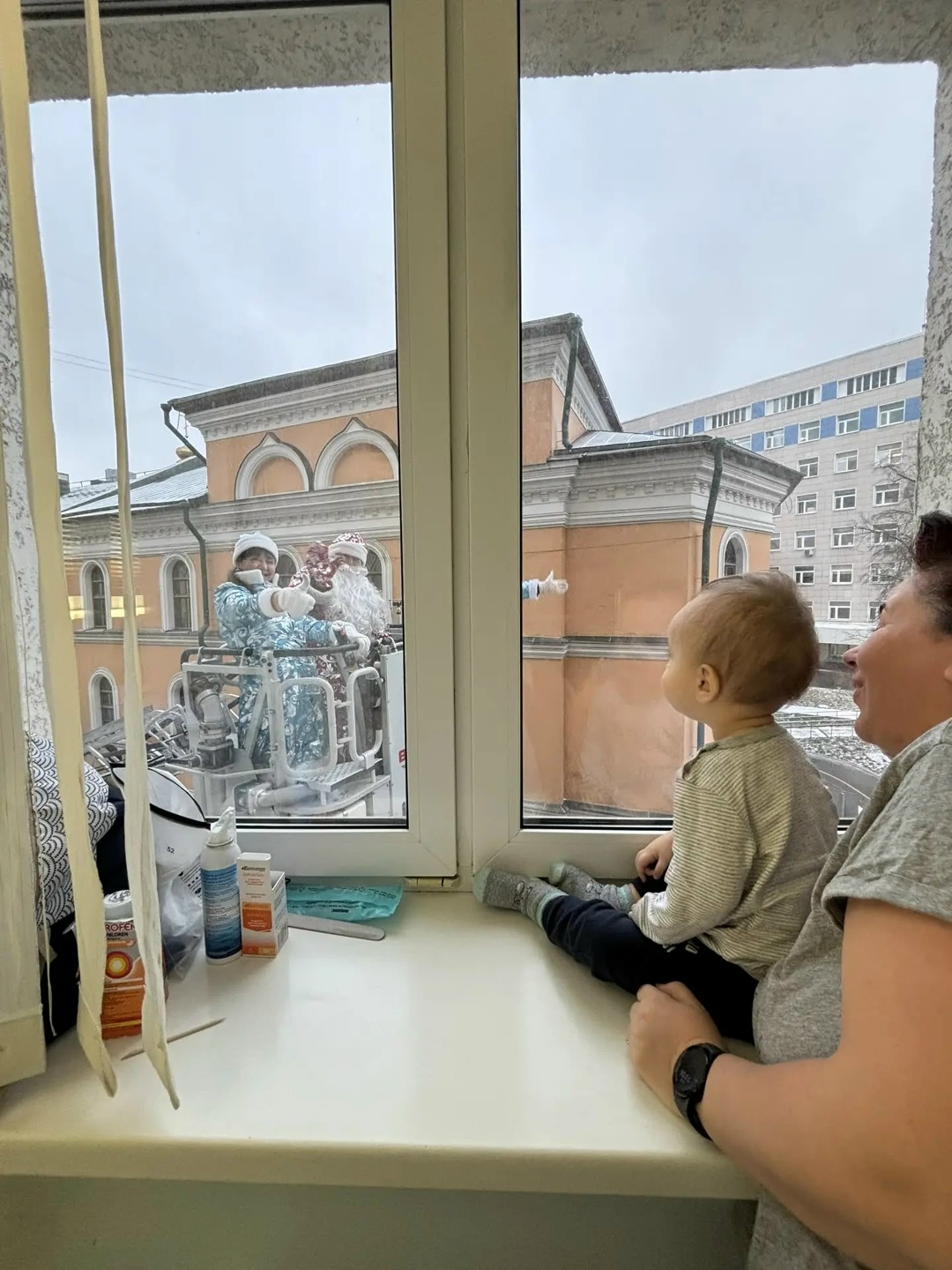 Каждому ребенку нужна встреча с чудом! И она сегодня произошла. Десант новогодних героев – Дедушки Мороза и Снегурочки взметнулся к окнам лечебных корпусов детской больницы №9 им. Г.Н. Сперанского.