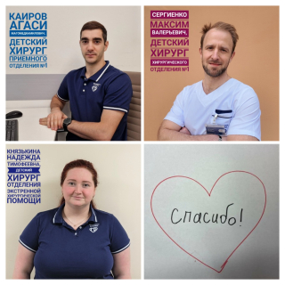 «Хочу сказать огромное спасибо врачам от себя и своей жены Детской городской клинической больницы №9 имени Г.Н. Сперанского – особенно детским хирургам Князькиной Надежде Тимофеевне, Сергиенко Максиму Валерьевичу и Каирову Агаси Магомедкамиловичу.