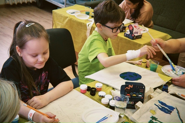 Вместе с замечательными ребятами мы устроили творческий мастер-класс — раскрашивали экологичные сумки-шопперы. Яркие краски, кисти и фантазия помогли нам забыть о больничных стенах и перенестись в мир искусства и радости.